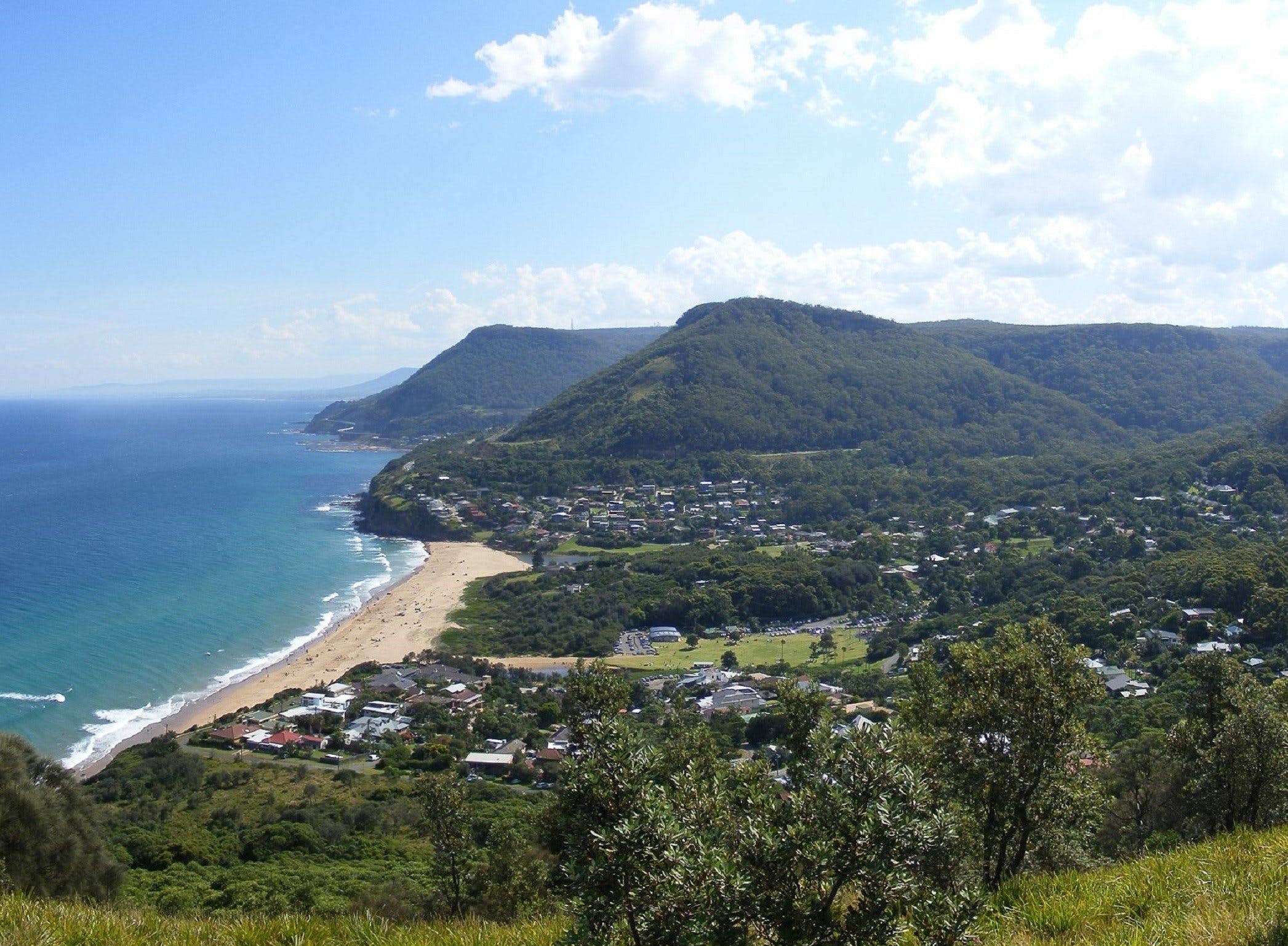 Bald Hill lookout offers expansive views south towards Wollongong and is internationally known as a major hang-gliding point.